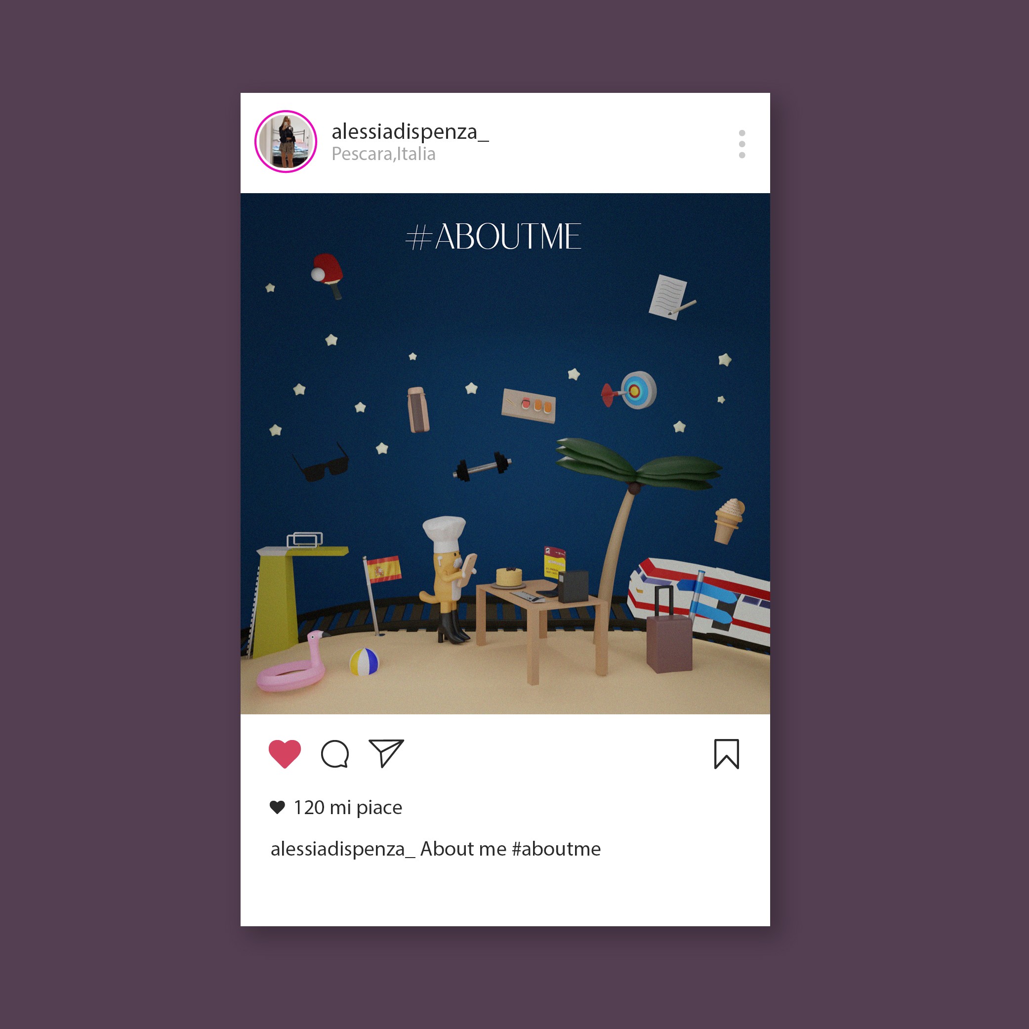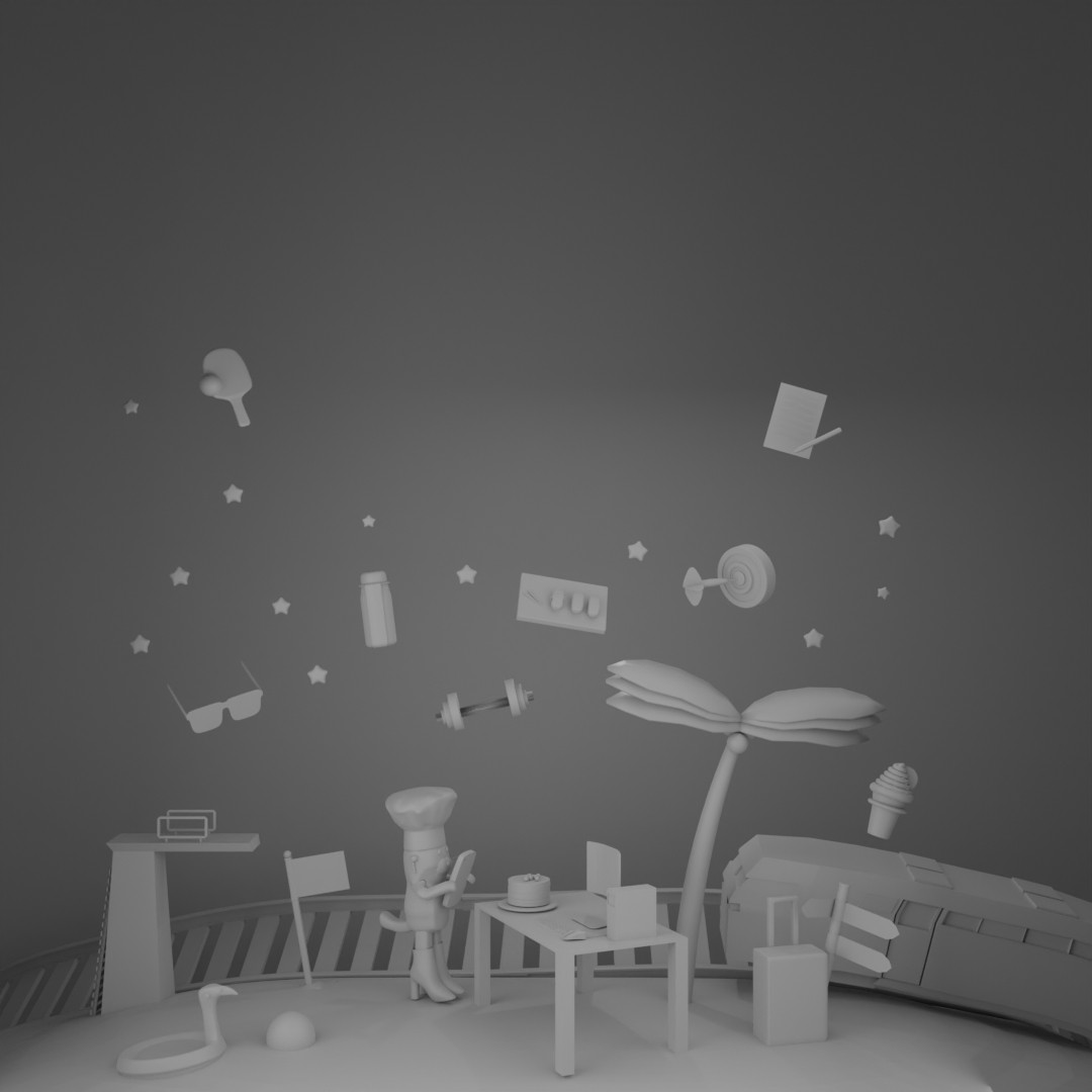 Crear una escena 3D completamente desde cero en Blender que me representara de forma creativa, utilizando objetos simbólicos para contar mi historia personal y profesional. El reto consistía en diseñar un ambiente coherente, estilizado y visualmente atractivo que comunicara mis intereses, habilidades y personalidad sin necesidad de texto.