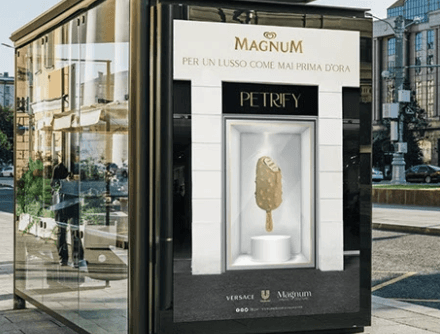 Fusión moda + helado: La propuesta gráfica une la identidad icónica de Magnum con el lenguaje visual de una marca de moda, creando una experiencia fresca, aspiracional y perfectamente alineada con una noche de gala.